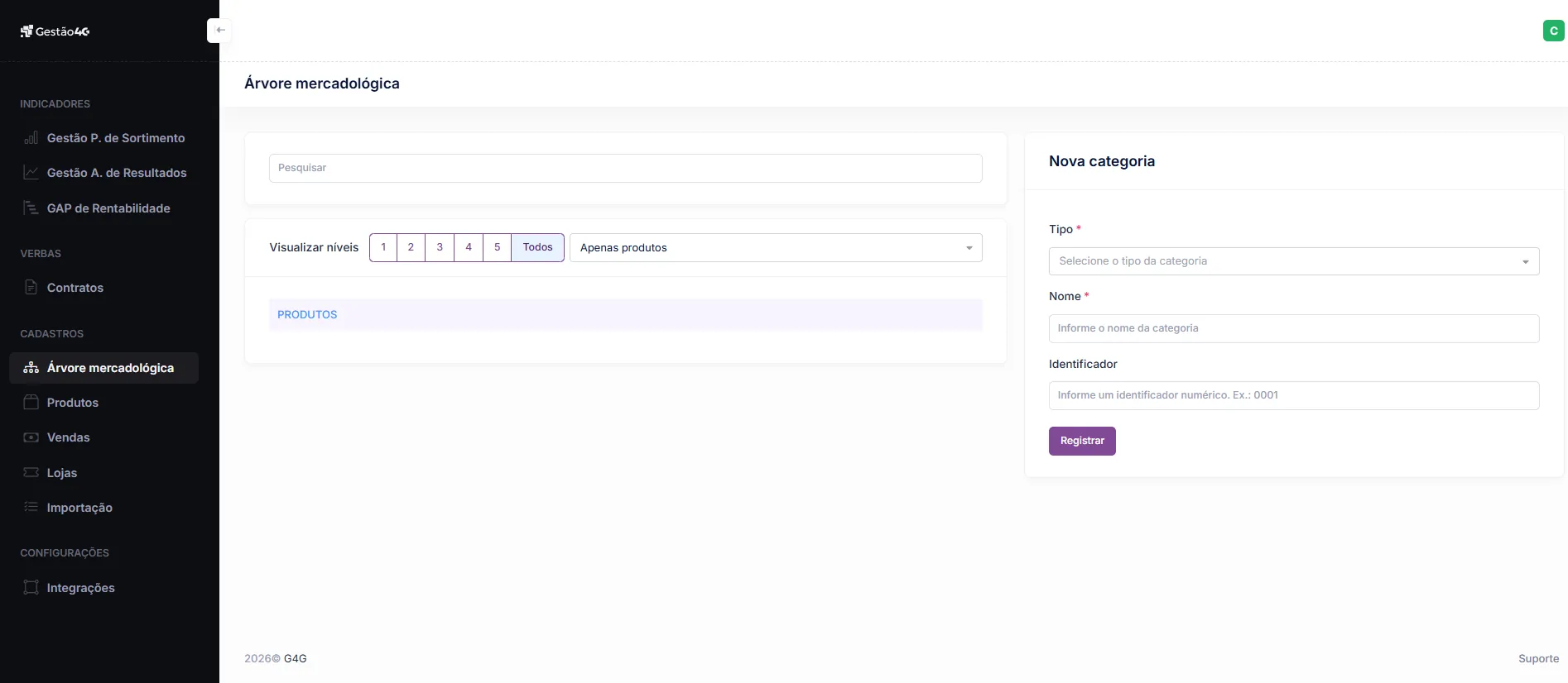 A árvore mercadológica define quais produtos são comparáveis entre si. Ela é a base da análise de sortimento e da classificação GPS.